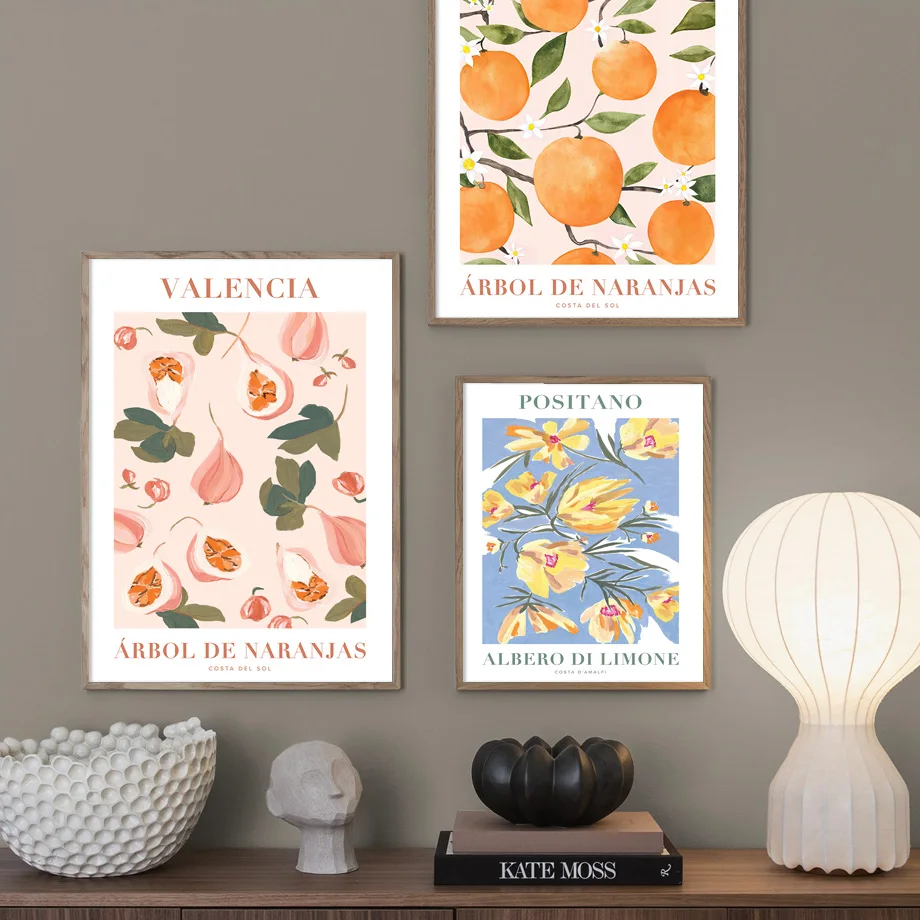 Valencia pomarańczowy Positano Lemon kwiaty liście Wall Art Print CanvasNordic plakat obrazy dekoracje ścienne do salonu wystrój