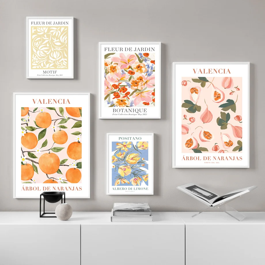 Valencia pomarańczowy Positano Lemon kwiaty liście Wall Art Print CanvasNordic plakat obrazy dekoracje ścienne do salonu wystrój